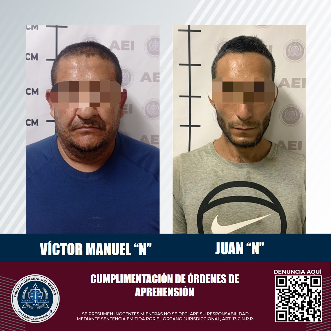 Estas detenciones se realizan por elementos pertenecientes a la Agencia Estatal de Investigación, fortaleciendo resultados en la labor de persecución del delito, mediante métodos de investigación para esclarecer los hechos, buscando que los responsables sean procesados ante la justicia y no dejar impune los delitos que laceren la integridad de los bajacalifornianos.