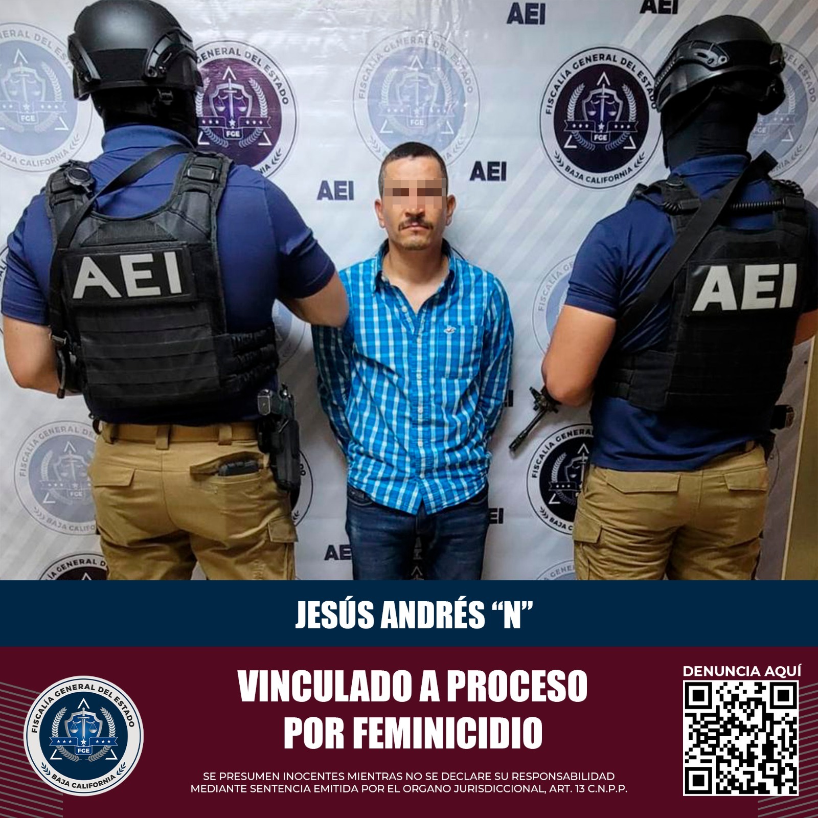 TIJUANA B.C. La Fiscalía General del Estado (FGE) informa que, a través del Ministerio Público, se ha obtenido la vinculación a proceso penal para Jesús Andrés "N", quien enfrenta cargos por feminicidio.