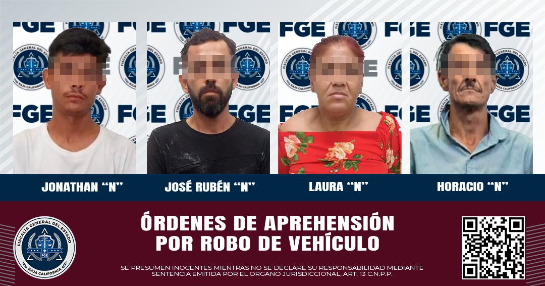 MEXICALI, B.C. Elementos de la Fiscalía Regional de Mexicali realizaron un despliegue policíaco en distintos puntos de la ciudad, logrando la captura de cuatro individuos, entre ellos una mujer, quienes eran requeridos por la justicia por contar un mandato judicial en su contra.