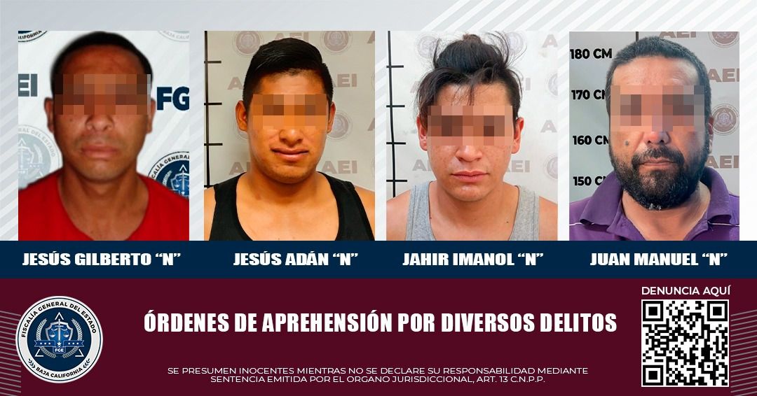 MEXICALI, B.C. Elementos de la Fiscalía Regional de Mexicali cumplimentaron cuatro mandatos judiciales por diversos delitos.