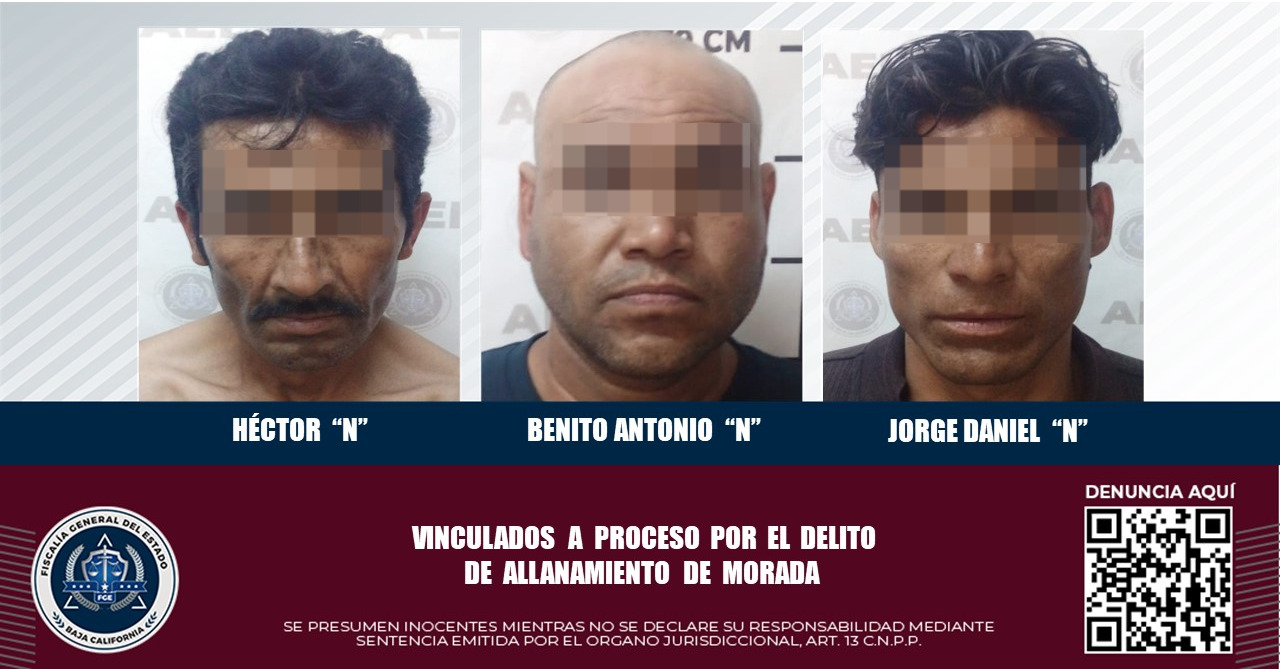 Por allanamiento de morada vinculan a tres sujetos que ingresaron ilícitamente a un domicilio asegurado por la FGE