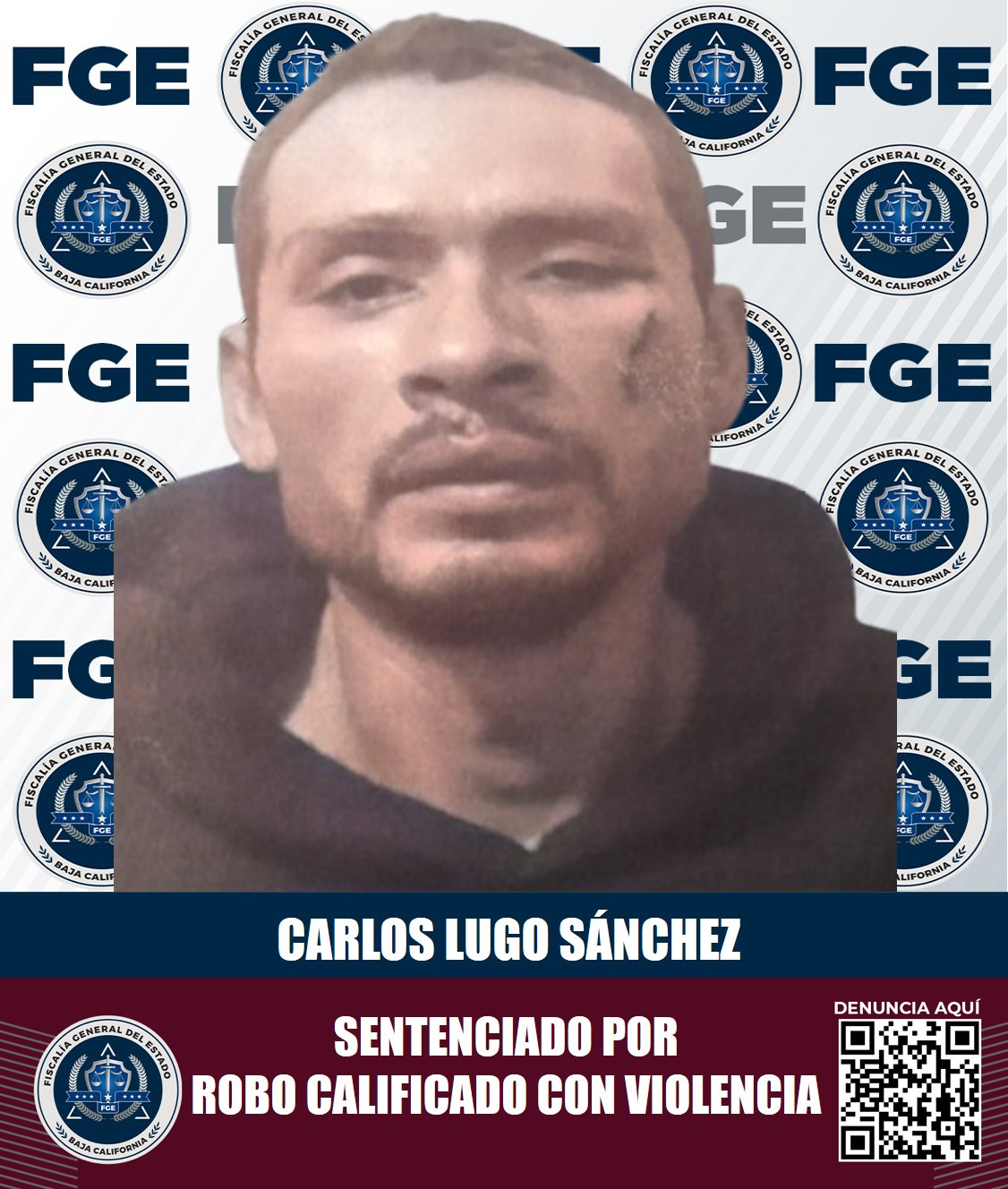 TIJUANA, B.C. El agente del Ministerio Público de la Fiscalía General del Estado aportó datos de prueba suficientes para que Carlos Lugo Sánchez fuera sentenciado a 3 años y 6 meses de prisión, al resultar penalmente responsable del delito de robo calificado en un establecimiento comercial abierto al público y ejecutado con violencia.