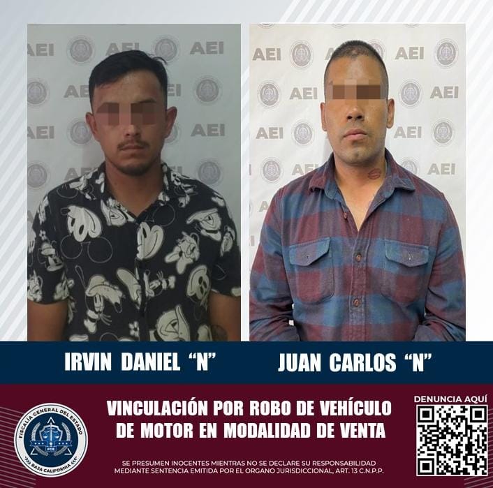 ENSENADA, B.C. La Fiscalía Regional de Ensenada logró la vinculación a proceso en contra de dos sujetos investigados, en casos distintos, por el delito de robo equiparado de vehículo de motor en modalidad de venta.
