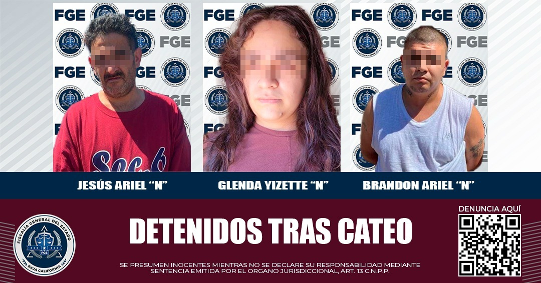 MEXICALI, B.C. Elementos de la Fiscalía General del Estado llevaron a cabo un cateo en un domicilio señalado como punto de venta de droga, donde se logró la captura de dos hombres y una mujer, además de decomisar diversos envoltorios con enervantes.