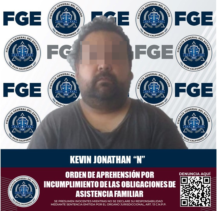 ENSENADA, B.C. Continuando con resultados en la captura de personas que son buscadas por la autoridad, agentes de la Fiscalía General del Estado cumplimentaron una orden de aprehensión a Kevin Jonathan “N”, por el delito de incumplimiento de las obligaciones de asistencia familiar.