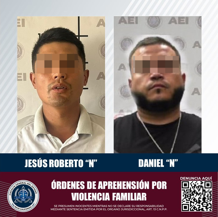 ENSENADA, B.C. Agentes de la Fiscalía General del Estado (FGE), cumplimentaron órdenes de aprehensión por el delito de violencia familiar, en contra de dos hombres en el municipio de Ensenada.