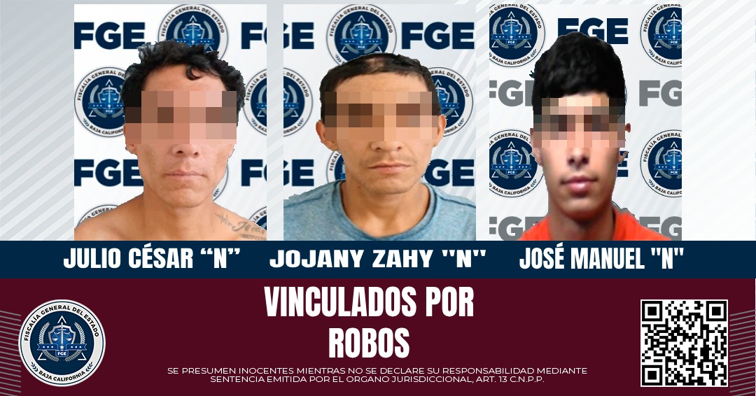 MEXICALI, B.C. La Fiscalía Regional de Mexicali, a través de la Unidad de Investigación de Robos Poniente, logró con base a los elementos de prueba, la vinculación de tres personas presuntamente relacionadas en robos cometidos en domicilios de la Zona Poniente del municipio.
