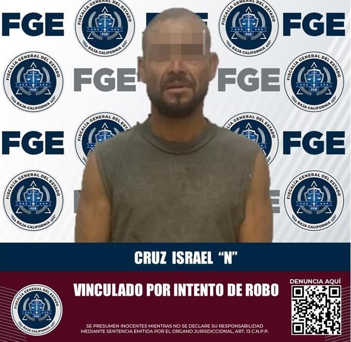 ENSENADA, B.C. 13 DE AGOSTO DE 2023.- La Fiscalía Regional de Ensenada logró la vinculación a proceso de un sujeto que, el pasado 7 de agosto, habría intentado cometer un robo en una zapatería, tras realizar un boquete.