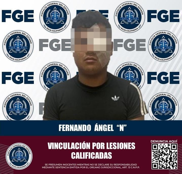 ENSENADA, B.C. La Fiscalía Regional de Ensenada, a través del agente del Ministerio Público, presentó cargos penales por el delito de lesiones calificadas, en contra de Fernando Ángel “N”, de 21 años de edad.