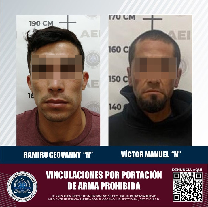 ENSENADA, B.C. La Fiscalía Regional de Ensenada, a través de datos de prueba expuestos por el Ministerio Público, logró el inicio de procesos penales en contra de dos hombres que, en diferentes colonias de la ciudad, fueron asegurados tras portar armas blancas.