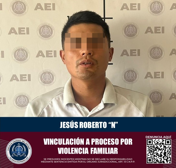 ENSENADA, B.C. La Fiscalía General del Estado logró la vinculación a proceso de Jesús Roberto “N”, de 33 años de edad, quien ha sido acusado de cometer comportamientos violentos hacia una mujer en el municipio de Ensenada, hecho por el cual permanece en prisión.