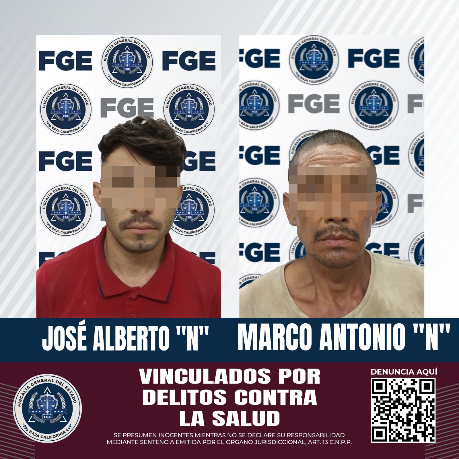 MEXICALI, B.C. Después de presentar las carpetas de investigación con los elementos de prueba suficientes, la Fiscalía General del Estado logró que dos presuntos distribuidores de droga fueran vinculados a proceso.