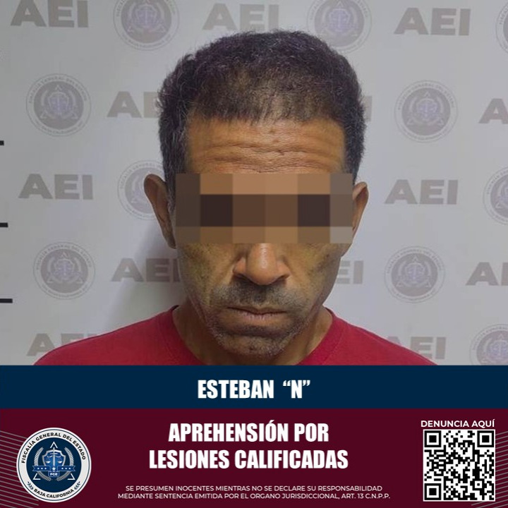 ENSENADA, B.C. Por el delito de lesiones calificadas, la Fiscalía General del Estado cumplimentó una orden de aprehensión en contra de Esteban “N” de 46 años de edad, tras hechos por los que la institución lleva a cabo una investigación en el municipio de Ensenada.