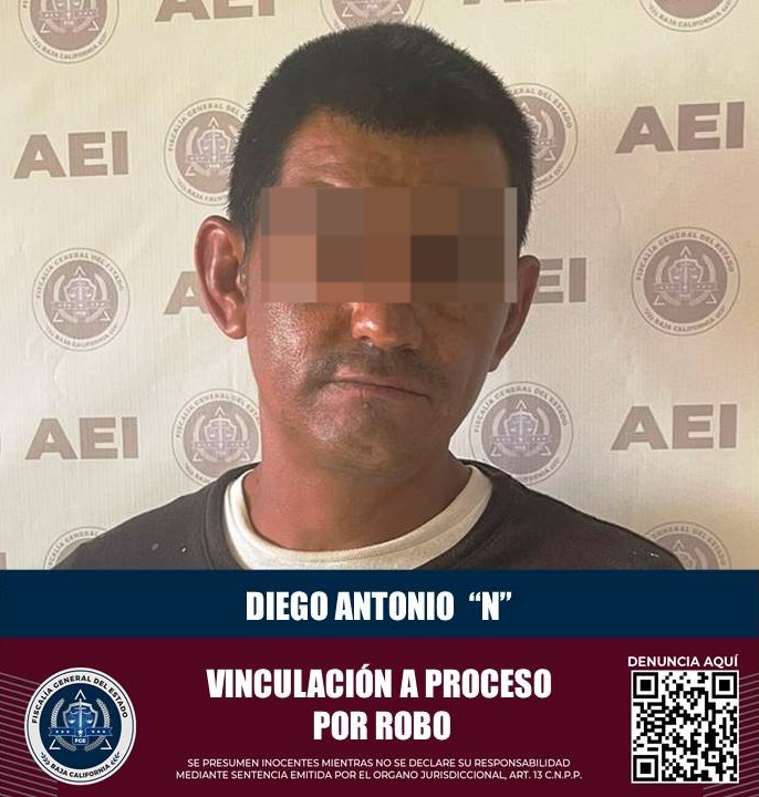 ENSENADA, B.C. La Fiscalía Regional de Ensenada, a través de la Unidad de Investigación de Robos, logró la vinculación a proceso de un hombre que presuntamente cometió un asalto en un comercio.
