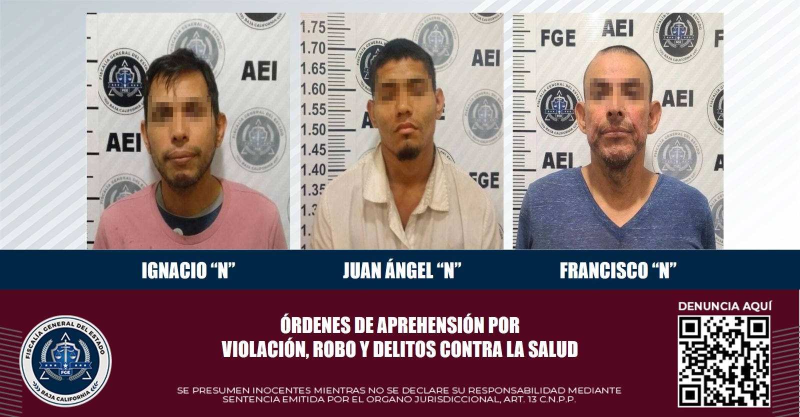 TIJUANA, B.C. El Grupo Especializado en Aprehensiones de la Fiscalía General del Estado, realizó acciones de investigación mediante las cuales se logró dar cumplimiento a mandamientos judiciales por violación, robo calificado y delitos contra la salud.