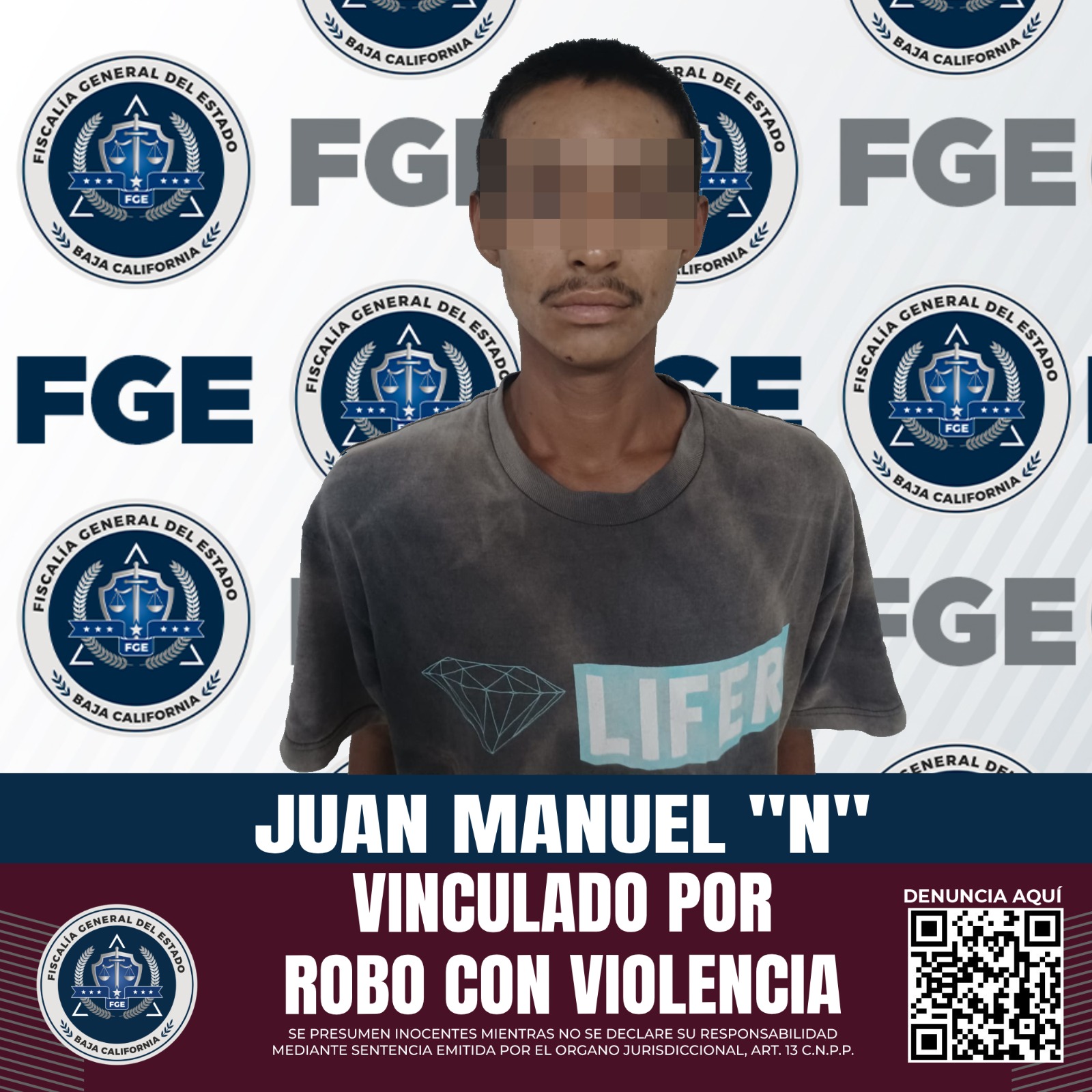 MEXICALI, B.C. La Fiscalía Regional de Mexicali, a través de la Unidad de Investigación de Robo Poniente, obtuvo la vinculación a proceso en contra de un hombre presuntamente relacionado en el robo con violencia de un hotel ubicado en el Centro Cívico.