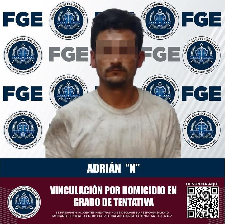 ENSENADA, B.C. La Fiscalía General del Estado logró la vinculación a proceso de un hombre identificado como Adrián “N”, de 32 años de edad, a quien en días recientes se le cumplimentó orden de aprehensión por el delito de homicidio calificado en grado de tentativa.
