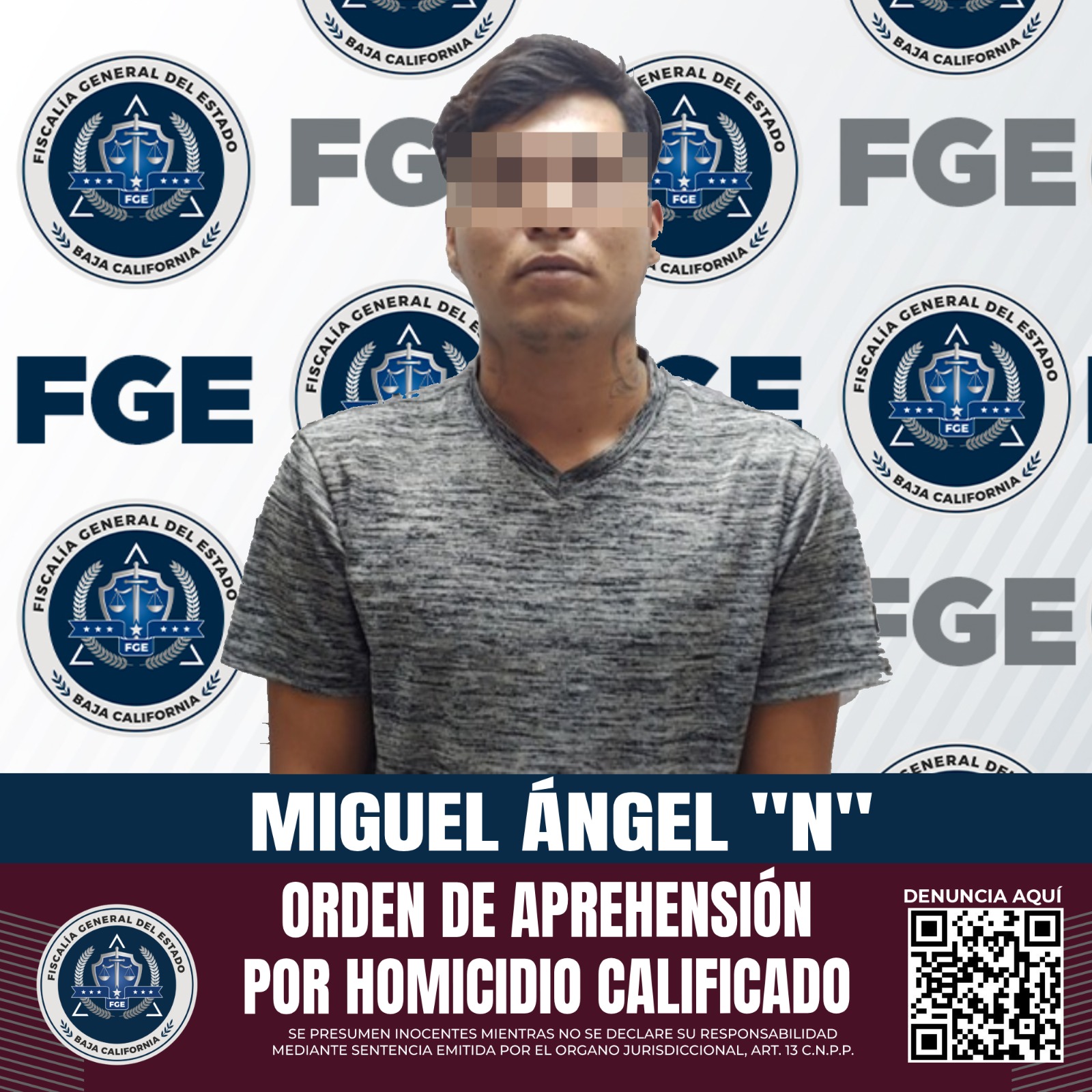 MEXICALI, B.C. Elementos de la Fiscalía General del Estado, cumplimentaron orden de aprehensión en contra de Miguel Ángel “N”, acusado del delito de homicidio calificado ocurrido el 29 de julio del 2022.