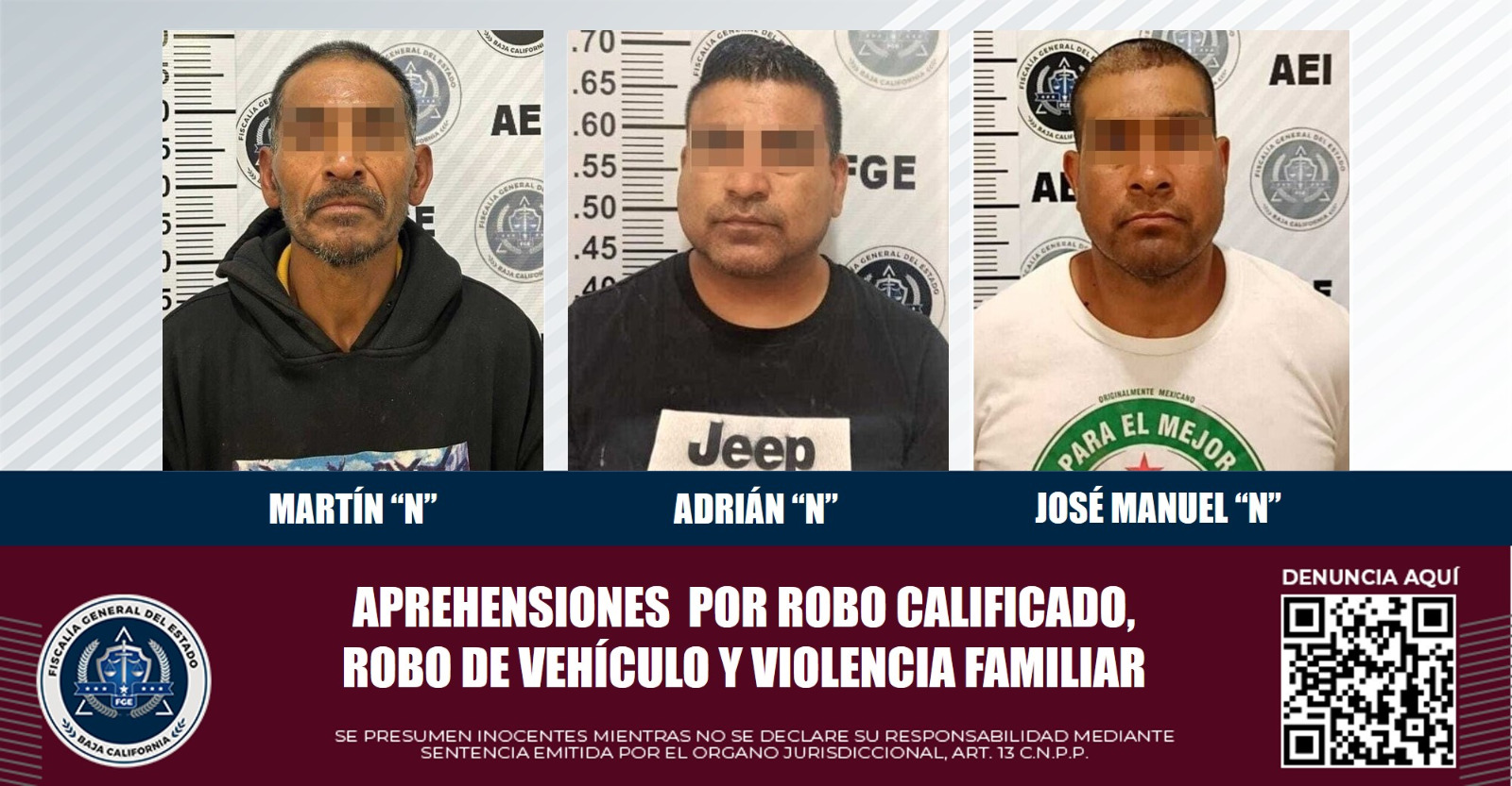 TIJUANA, B.C. La Fiscalía General del Estado, a través de elementos de la Agencia Estatal de Investigación (AEI) dio cumplimiento a tres mandatos judiciales por diversos delitos. Las personas quedaron a disposición del juez en tanto avanzan las investigaciones.