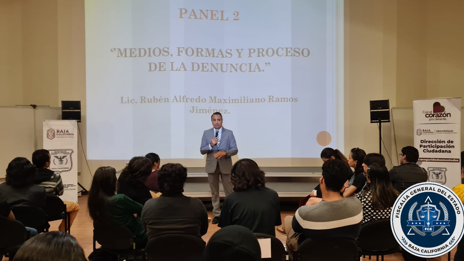 En acato a esta instrucción, el Fiscal Regional de Ensenada, Rubén Maximiliano Ramos Jiménez, fungió como ponente del tema ¨Medios, Formas y Procesos de la Denuncia¨ en el foro estudiantil ¨Juntos Podemos Prevenir la Violencia en la Escuela¨, realizado por Secretaría de Seguridad Ciudadana del Estado y la Universidad Autónoma de Baja California.