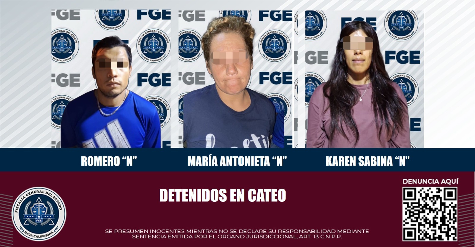Durante el cateo, se logró la detención de María Antonieta “N” de 43 años, Romero “N” de 22 años de edad y Karen Sabina “N” de 25 años.