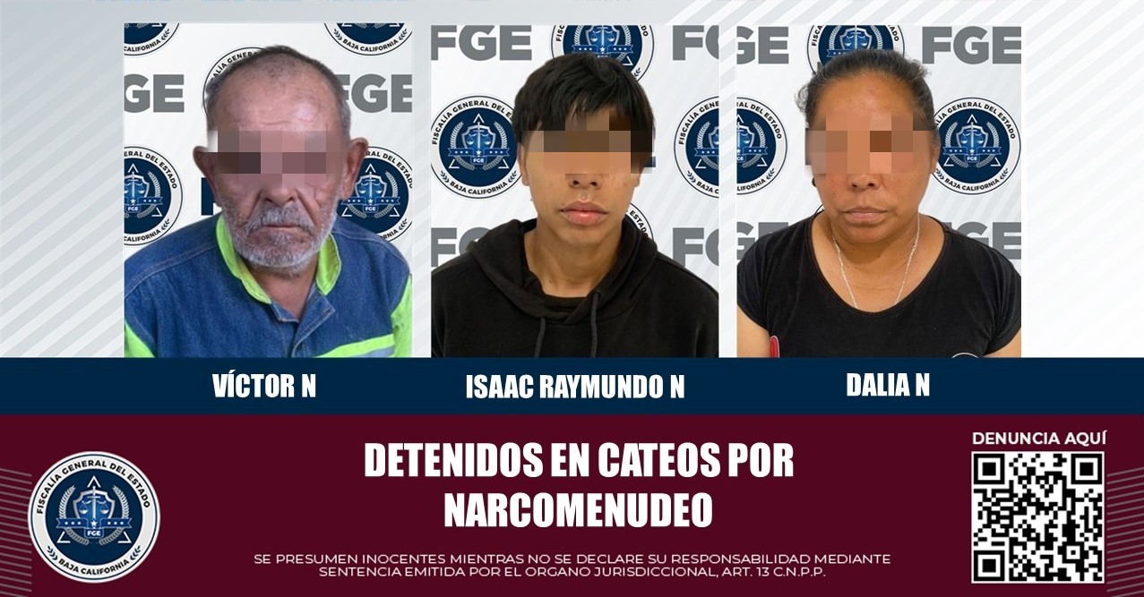 TIJUANA, B.C. La Fiscalía General del Estado, a través del Ministerio Público de la Fiscalía Especializada en Contra del Narcomenudeo, ha llevado a cabo tres detenciones y decomisos de drogas en tres operativos de cateo como parte de su lucha contra el tráfico y venta de estupefacientes en colonias de Tijuana y Playas de Rosarito.