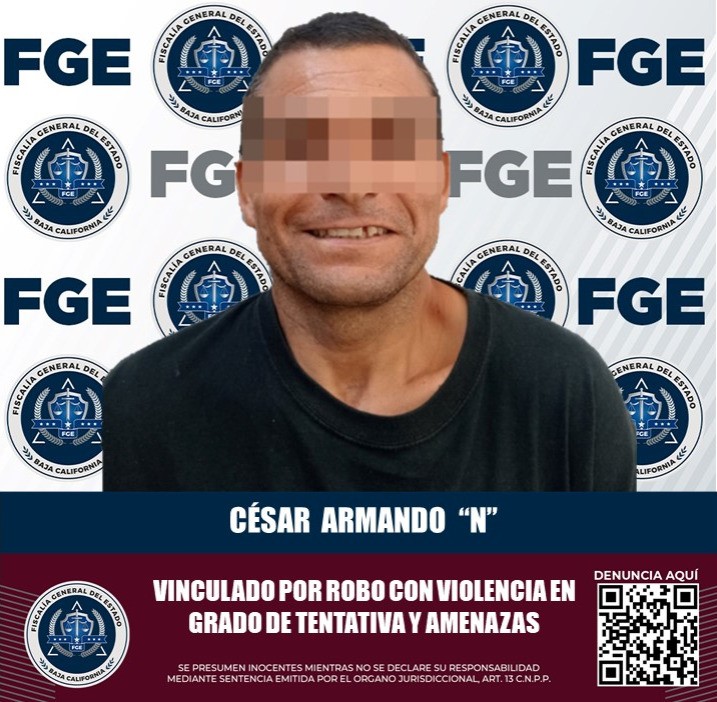 MEXICALI, B.C. Con base a los elementos de prueba presentados, la Fiscalía Regional de Mexicali, a través de la Unidad de Investigación con Detenidos Poniente, logró la vinculación de un acusado de intentar robar de manera violenta sus pertenencias a una mujer.