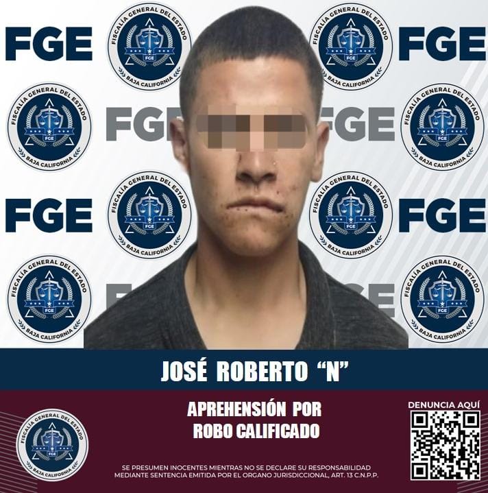 ENSENADA, B.C. La Fiscalía General del Estado (FGE), cumplimentó una orden de aprehensión en contra de José Roberto “N”, de 20 años de edad, por el delito de robo calificado ejecutado con violencia dentro de una casa habitación.