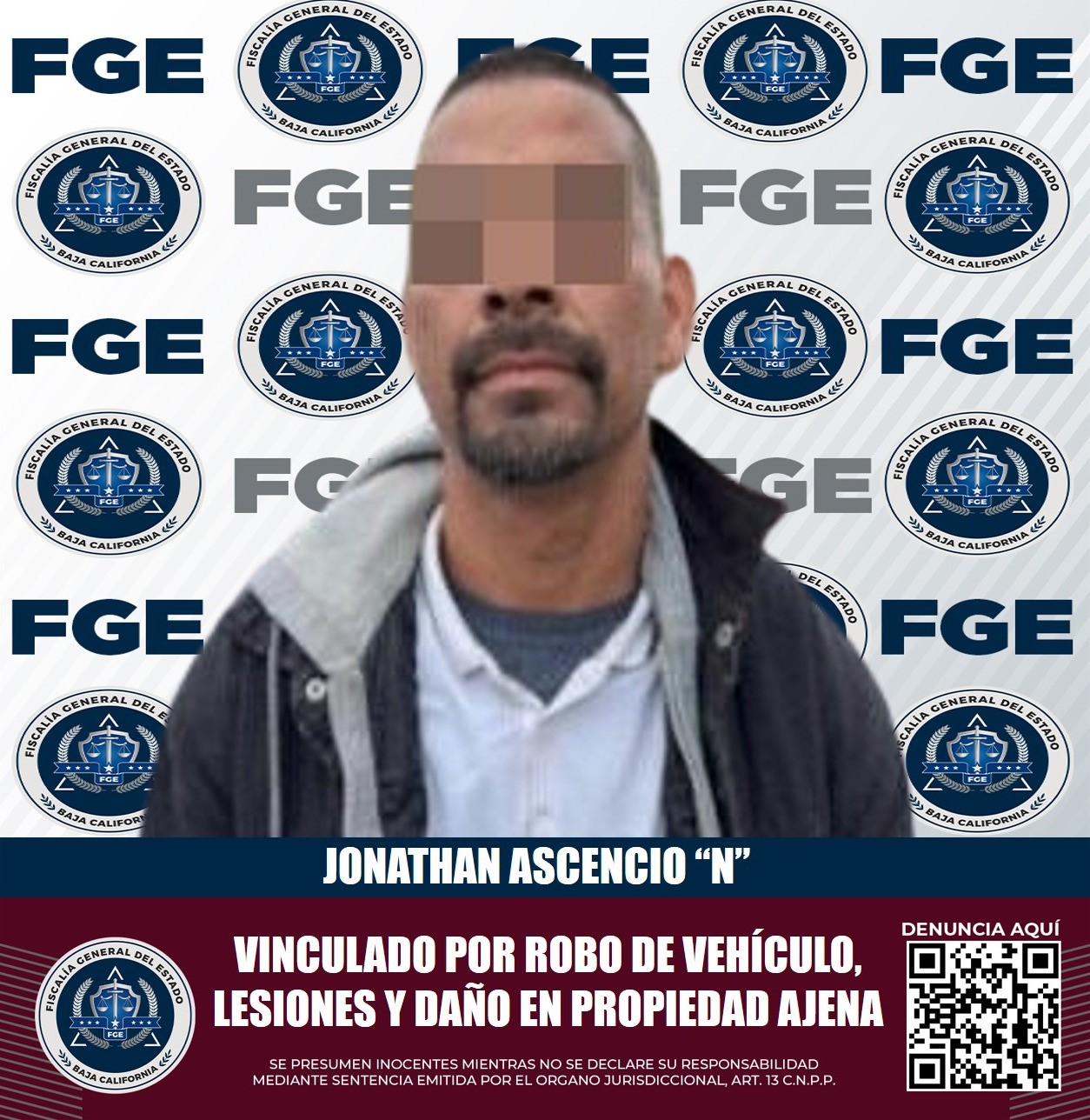 PLAYAS DE ROSARITO, B.C. Como resultado de acciones de investigación y datos de prueba recabados por la Fiscalía Regional de Playas de Rosarito, se obtuvo la vinculación a proceso de un hombre que es presunto responsable de los delitos de robo de vehículo de motor, lesiones y daño en propiedad ajena.