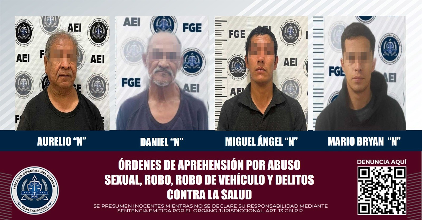 TIJUANA, B.C. Labor de persecución de los delitos, derivó en la cumplimentación de cuatro órdenes de aprehensión, lo anterior, mediante diligencias desarrolladas por elementos de la Fiscalía General del Estado, adscritos a la Agencia Estatal de Investigación (AEI).