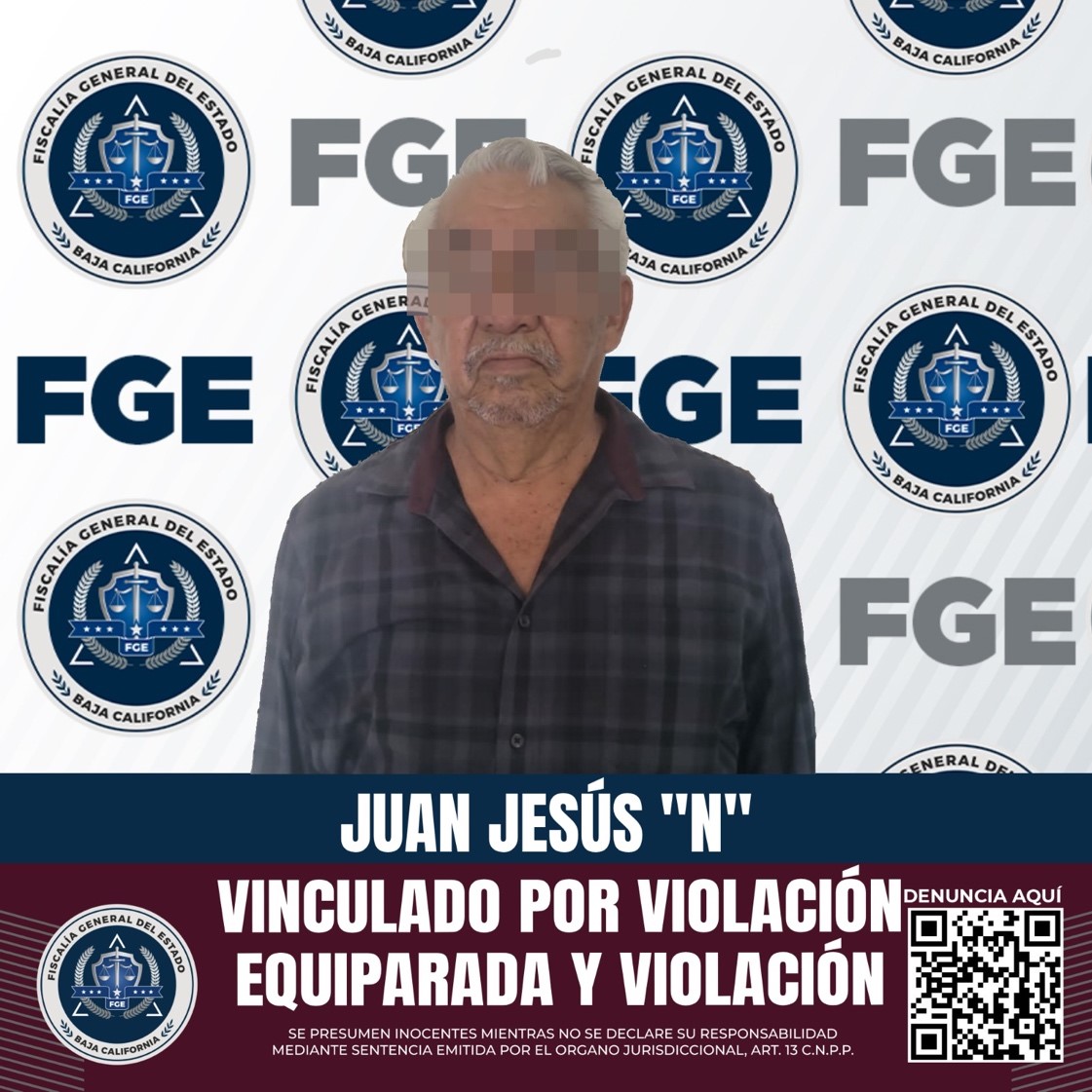 MEXICALI, B.C. Por la presunta responsabilidad de Juan Jesús “N”, en los delitos de violación equiparada y violación, en agravio de una menor de catorce años, la Fiscalía General del Estado, a través de la Fiscalía Especializada en Delitos Contra Mujeres por Razón de Género, logró iniciar proceso penal en su contra.
