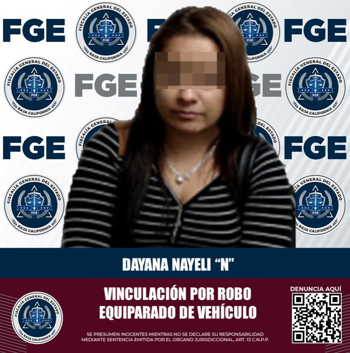 ENSENADA, B.C. La Unidad de Investigación de Robo de Vehículos de la Fiscalía Regional de Ensenada, logró la vinculación a proceso de Dayana Nayeli “N”, presuntamente implicada en la venta de un pick up robado, hecho por el que permanece recluida.
