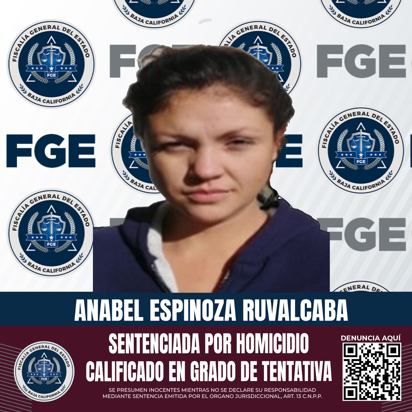 MEXICALI, B.C. Con base en las evidencias integradas en la carpeta de investigación y en la presentación de argumentos, la Fiscalía General del Estado (FGE), logró fallo condenatorio en contra de Anabel Espinoza Ruvalcaba, por el delito de homicidio calificado en grado de tentativa.