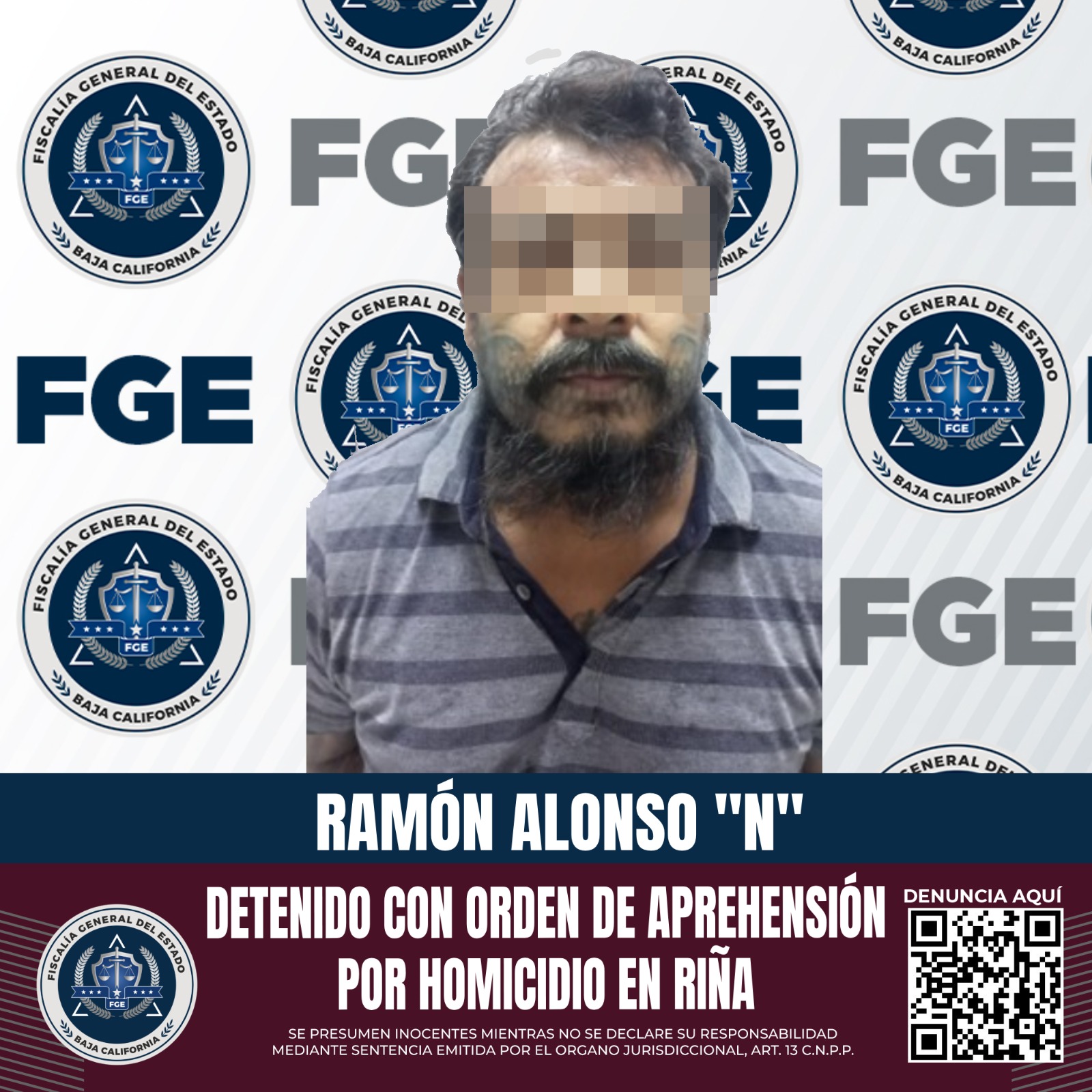 MEXICALI, B.C. Elementos de la Agencia Estatal de Investigación de la Fiscalía General del Estado, detuvieron a Ramón Alonso “N”, a quien le cumplimentaron una orden de aprehensión por el delito de homicidio en riña, tras un incidente ocurrido el 1 de mayo de 2021.