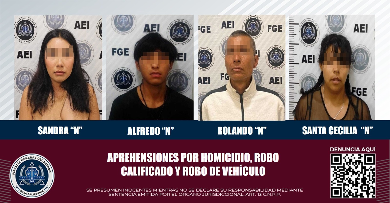 TIJUANA, B.C. Cuatro personas, dos mujeres y dos hombres, que contaban con orden de aprehensión activa fueron detenidas como parte de investigaciones que desarrolla la Fiscalía General del Estado.