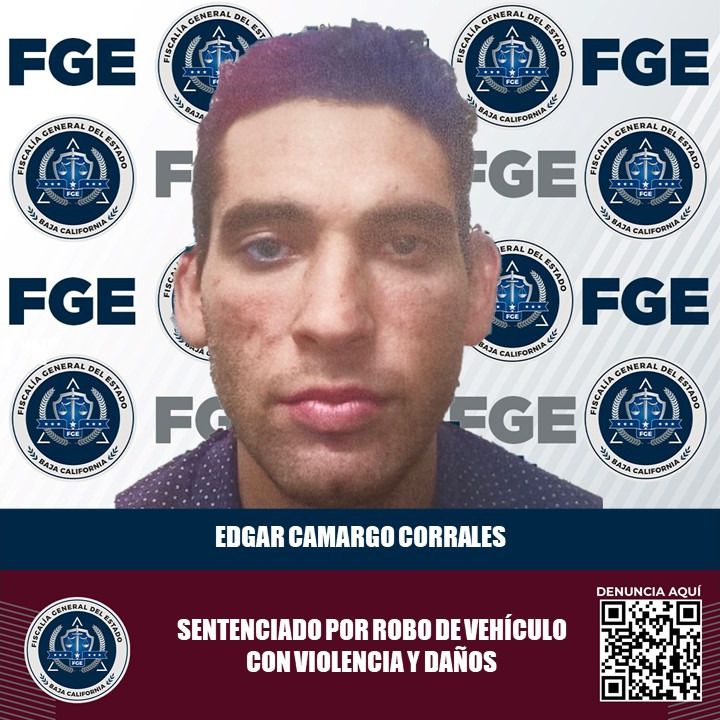 ENSENADA, B.C. Al aportar pruebas contundentes, la Fiscalía Regional de Ensenada logró sentencia condenatoria en el caso de un sujeto que cometió robo con violencia y daños al despojar a punta de pistola a un hombre de su vehículo y en su intento de huida colisionar contra otro auto.
