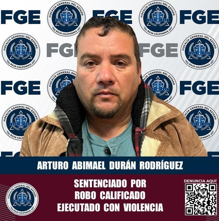 SAN QUINTÍN, B.C. La Fiscalía Regional de San Quintín, logró pena de 5 años con 10 meses de prisión y 500 días de multa contra Arturo Abimael Durán Rodríguez, por el delito de robo calificado cometido a establecimiento comercial abierto al público y robo de vehículo con violencia.