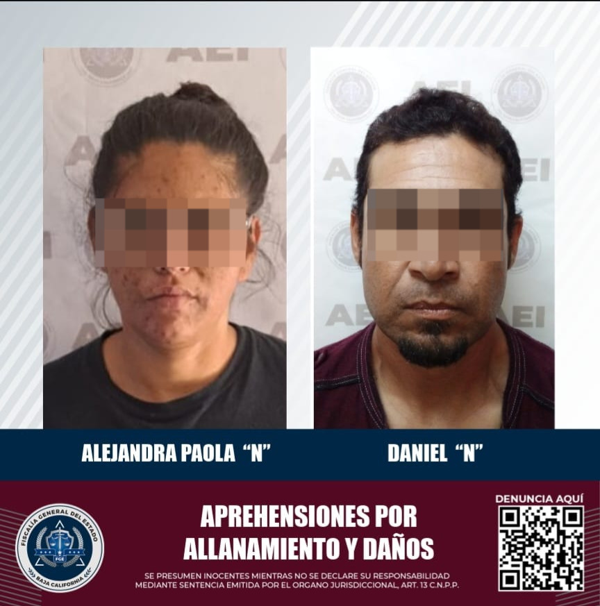 ENSENADA, B.C. Como resultado de diligencias de investigación, agentes de la Fiscalía General del Estado cumplimentaron orden de aprehensión a un hombre y una mujer presuntamente implicados en diferentes delitos.