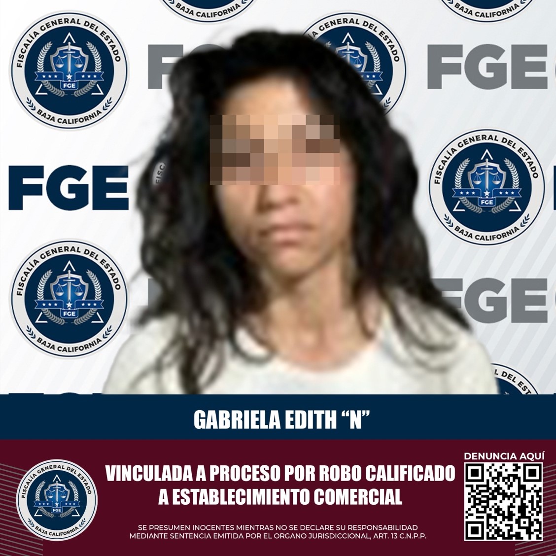 PLAYAS DE ROSARITO, B.C. Acciones de investigación permitieron a la Fiscalía Regional de Playas de Rosarito, presentar cargos penales en contra de una mujer, acusada del delito de robo calificado a establecimiento comercial abierto al público, ocurrido en fecha reciente.