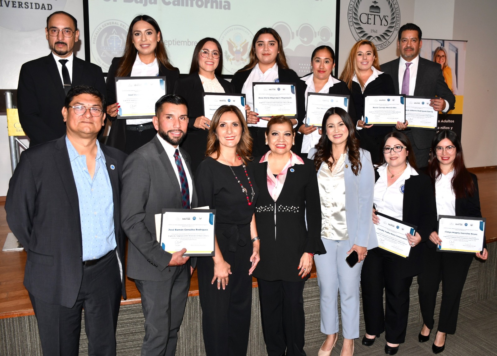En el marco de esta ceremonia, donde estuvieron presentes autoridades del Consulado y de Cetys, la titular de la FGE, Mtra. Ma. Elena Andrade Ramírez, reconoció la dedicación, la entrega y el compromiso de quienes este día finalizaron la capacitación en el idioma inglés, lo cual, en gran medida, contribuirá a mejorar la atención que se ofrece a ciudadanos extranjeros, especialmente estadounidenses que son los que más visitan y residen en Baja California.