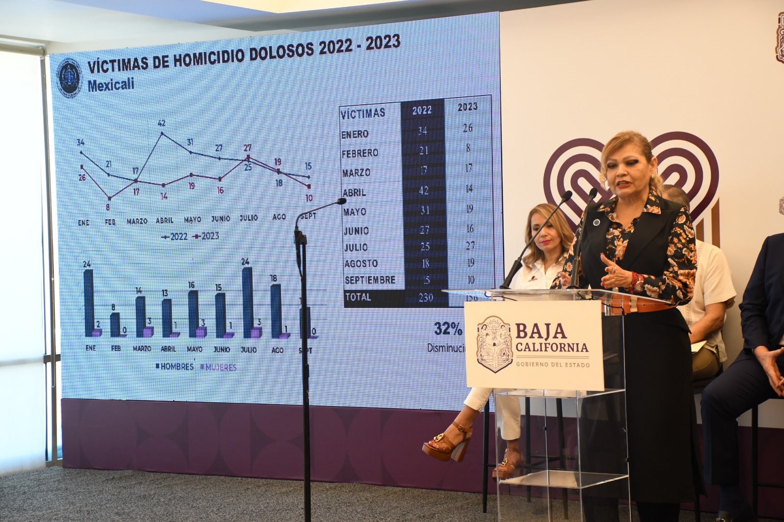MEXICALI, B.C. Una reducción del 32 por ciento en la comisión del delito de homicidio se han registrado en Mexicali, hasta los primeros 20 días de septiembre de 2023 en comparación del año pasado, informó la Fiscal General del Estado Ma. Elena Andrade Ramírez.