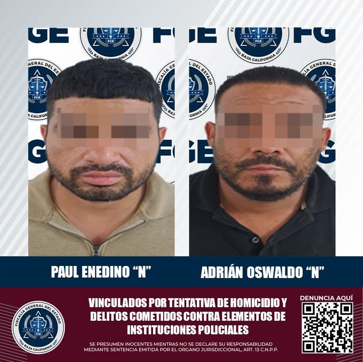 ENSENADA, B.C. La Fiscalía General del Estado (FGE), a través de la Fiscalía Especializada en Delitos Contra la Vida, logró la vinculación a proceso de dos sujetos detenidos por su presunta participación en el ataque armado cometido en perjuicio de cinco miembros activos de Instituciones Policiales del Estado.