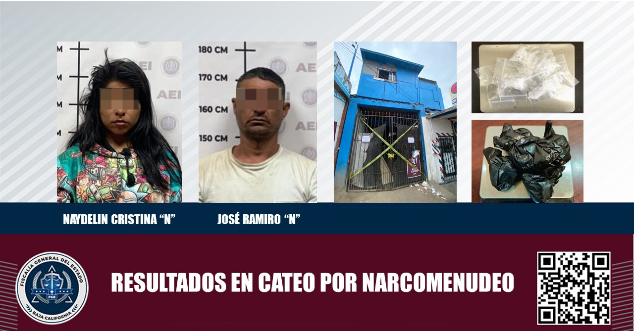ENSENADA, B.C. La Fiscalía General del Estado (FGE), aseguró a dos personas, droga y una vivienda tras ejecutar una orden de cateo en Maneadero parte baja.