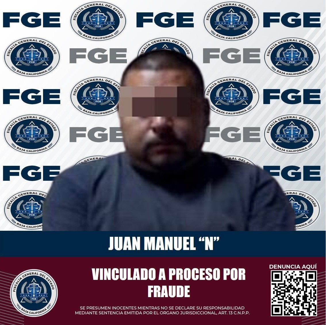 PLAYAS DE ROSARITO, B.C. El Ministerio Público de la Fiscalía Regional de Playas de Rosarito, obtuvo mediante labor de investigación, la vinculación a proceso penal de Juan Manuel “N”, acusado del delito que la ley señala como fraude.