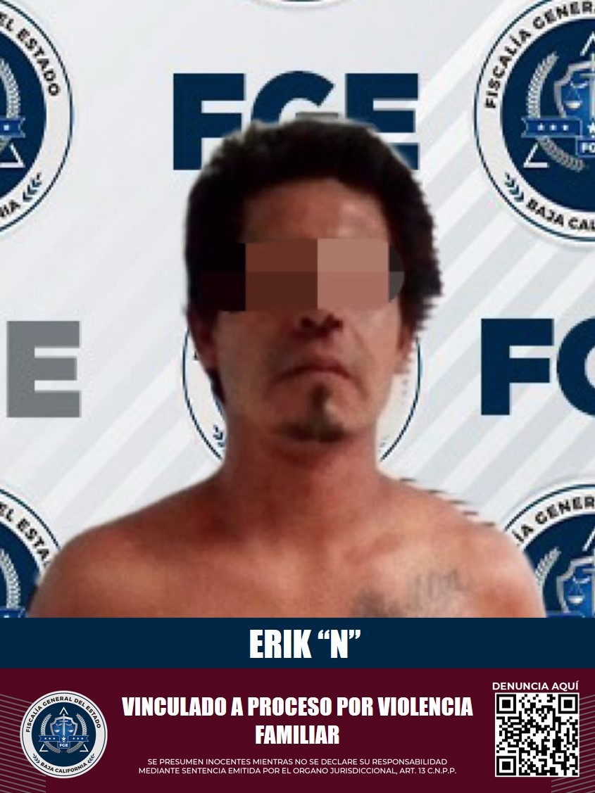 MEXICALI, B.C. Mediante el trabajo desempeñado por la Unidad de Investigación de la Fiscalía Regional de San Felipe, se logró la vinculación a proceso de Erik “N”, por presuntamente cometer el delito de violencia familiar.