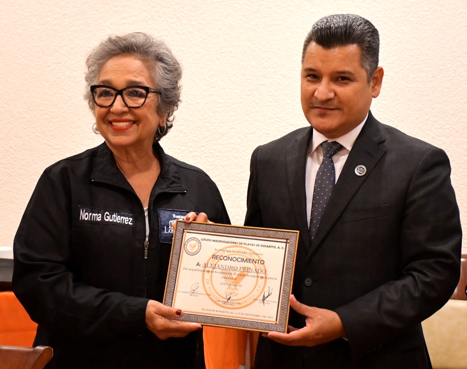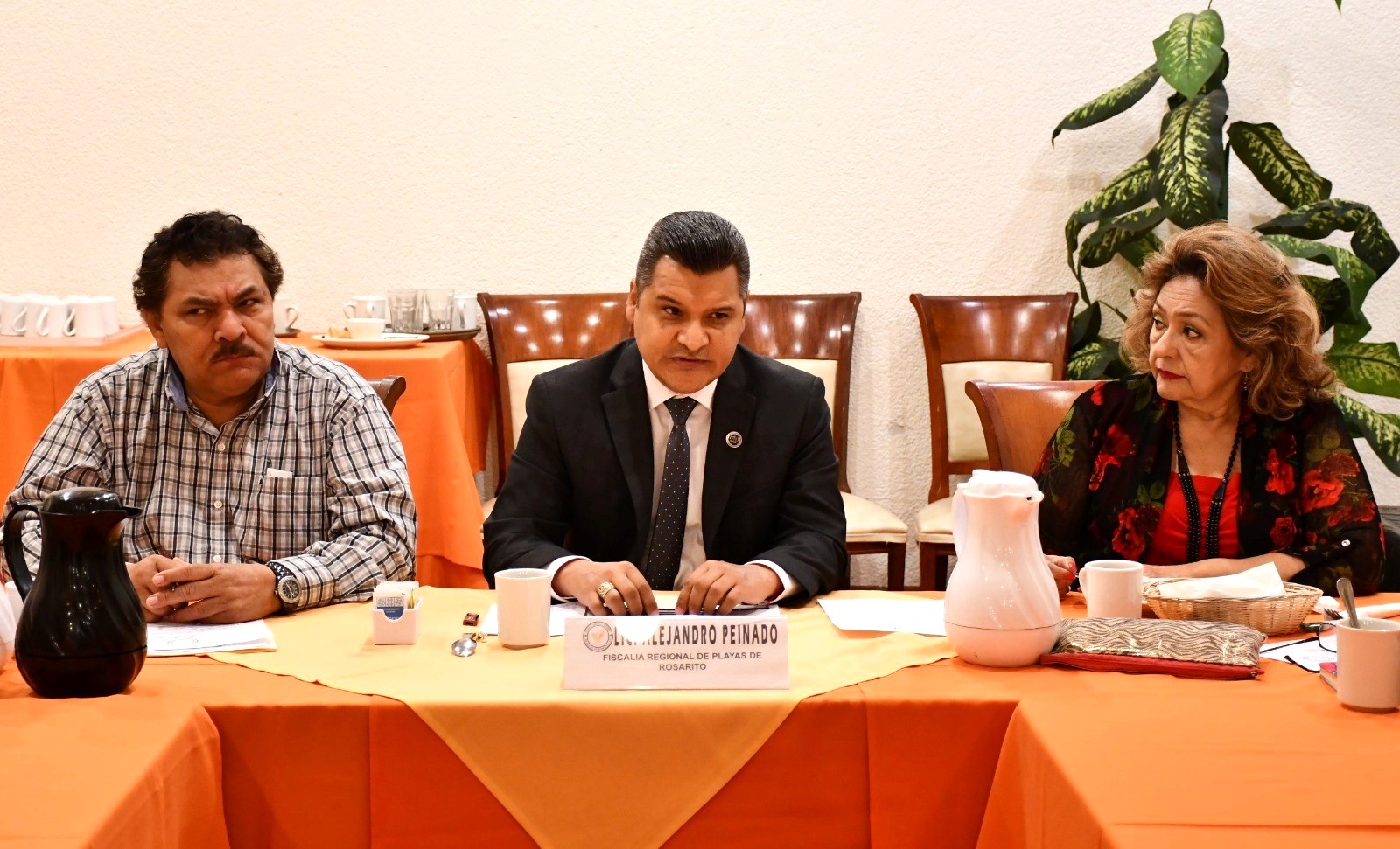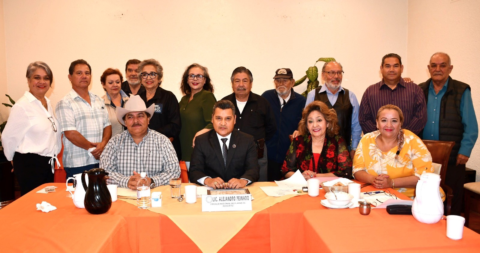 PLAYAS DE ROSARITO, B.C. Con la encomienda de la titular de la Fiscalía General del Estado, Ma. Elena Andrade Ramírez, de fortalecer los vínculos con los diferentes grupos de la sociedad para trabajar conjuntamente en acciones en favor de la justicia en Baja California, el Fiscal Regional de Playas de Rosarito, Alejandro Peinado, participó en la sesión del Grupo Madrugadores de esta ciudad, que dirige Rosario Castillo Zeja.