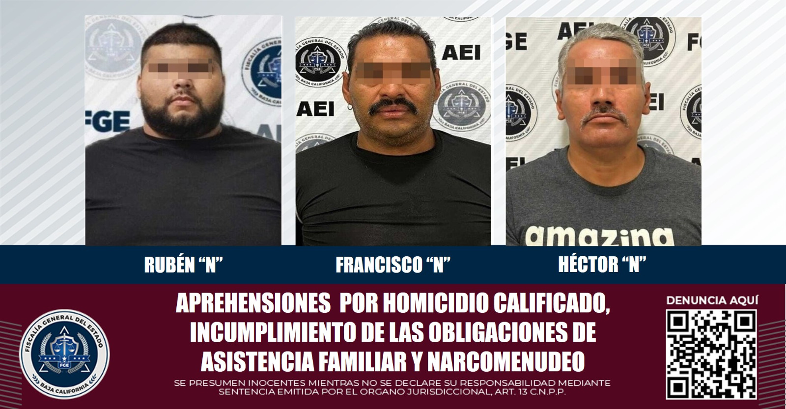 TIJUANA, B.C. La Fiscalía General del Estado, a través de la Agencia Estatal de Investigación, logró la cumplimentación de tres órdenes de aprehensión en contra de igual número de sujetos que eran requeridos por jueces de control, por tener señalamientos en su contra por diversos delitos.