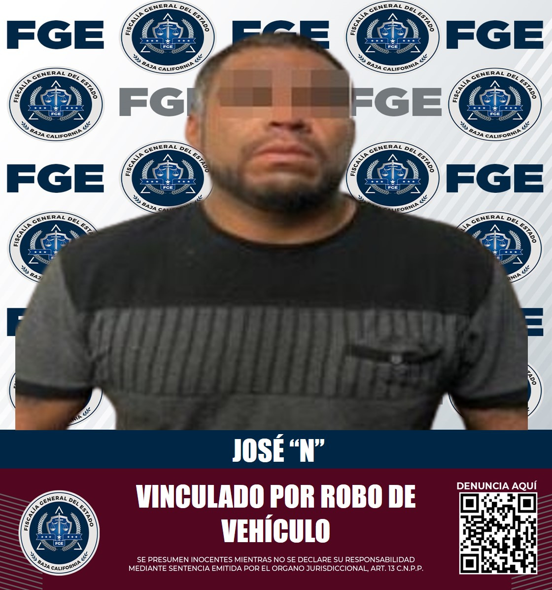 PLAYAS DE ROSARITO, B.C. La Fiscalía Regional de Playas de Rosarito, a través de la Unidad de Investigación con Detenido, obtuvo auto de vinculación a proceso en contra de José “N”, tras acreditarse su posible participación en el delito de robo de vehículo.