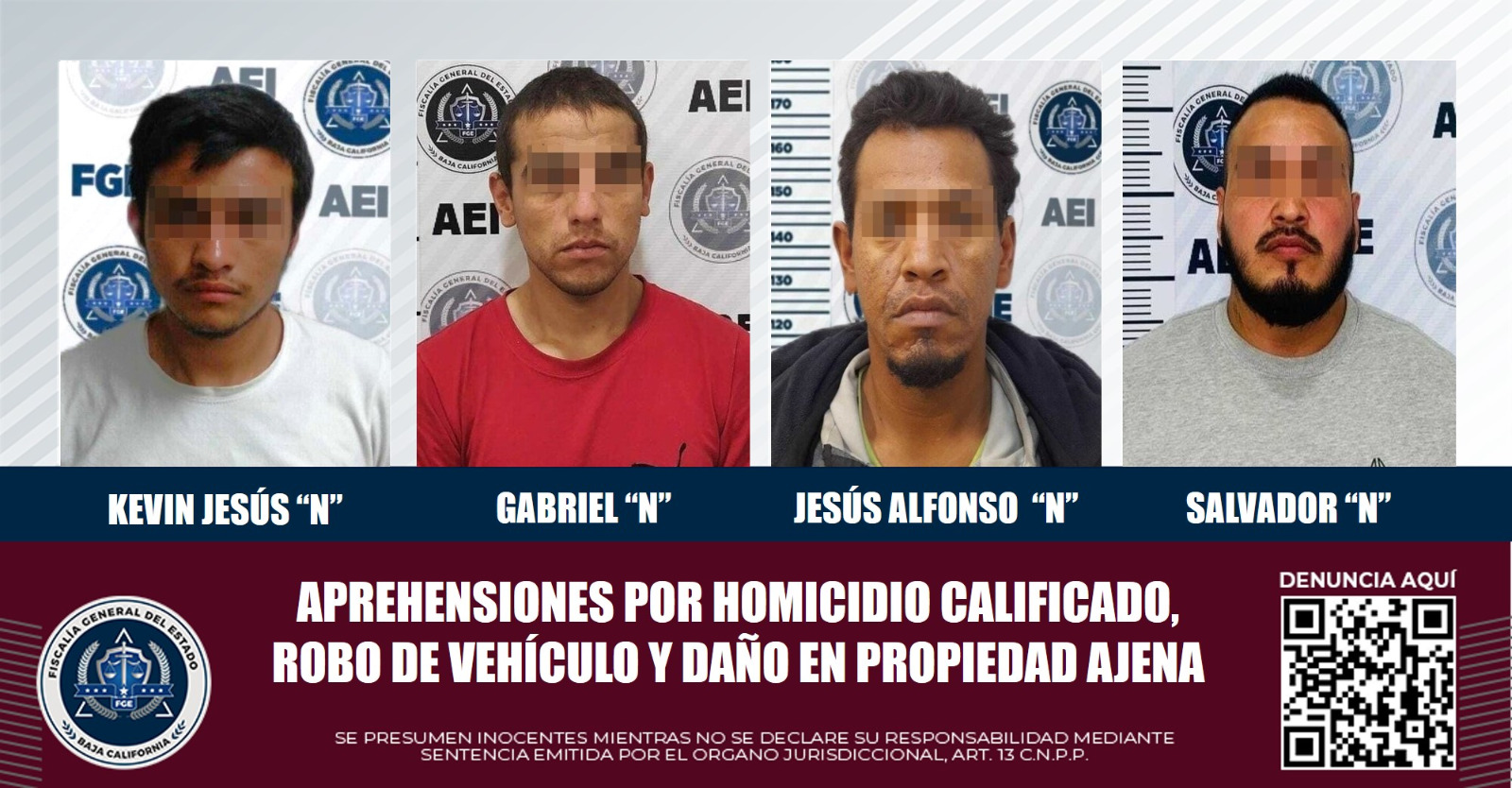 Cuatro sujetos fueron aprehendidos por Agentes Estatales de Investigación en Tijuana