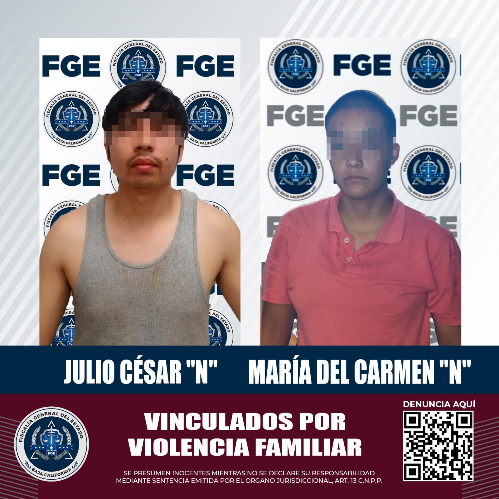 MEXICALI, B.C. Mediante el trabajo de las Unidades de Investigación Foráneas de Guadalupe Victoria y Ciudad Morelos, la Fiscalía Regional de Mexicali obtuvo la vinculación de un hombre y una mujer acusados, en audiencias por separado, de agredir a sus familiares.